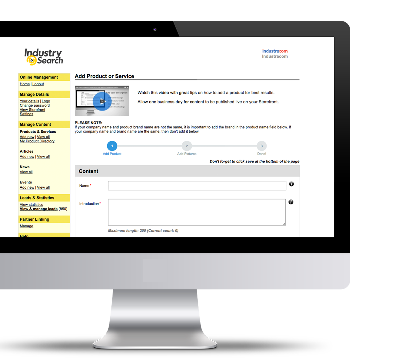 Whether you're after awareness or simply sales, IndustrySearch is always live and working for your business.